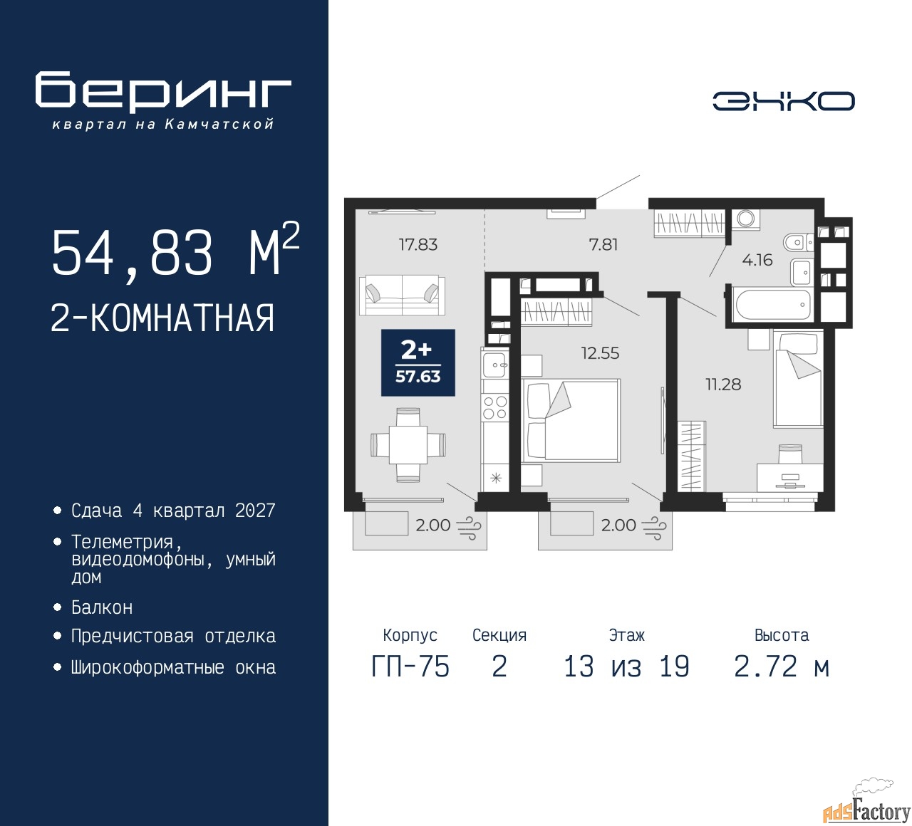 | Общая площадь (кв.м) | 54.83 |