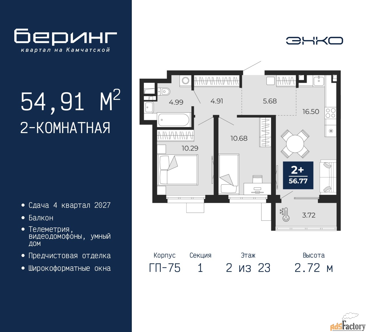 Дом монолитный, многоподъездный, переменной этажности, от 17 до 24 этажей. Квартира находится в 1-й секции высотой 23 этажа в корпусе ГП-75. На этаже 8 квартир. В подъезде 2 пассажирских и 1 грузовой лифт. Окончание строительства - 4 квартал 2027 года. Оформление сделки по договору долевого участия.