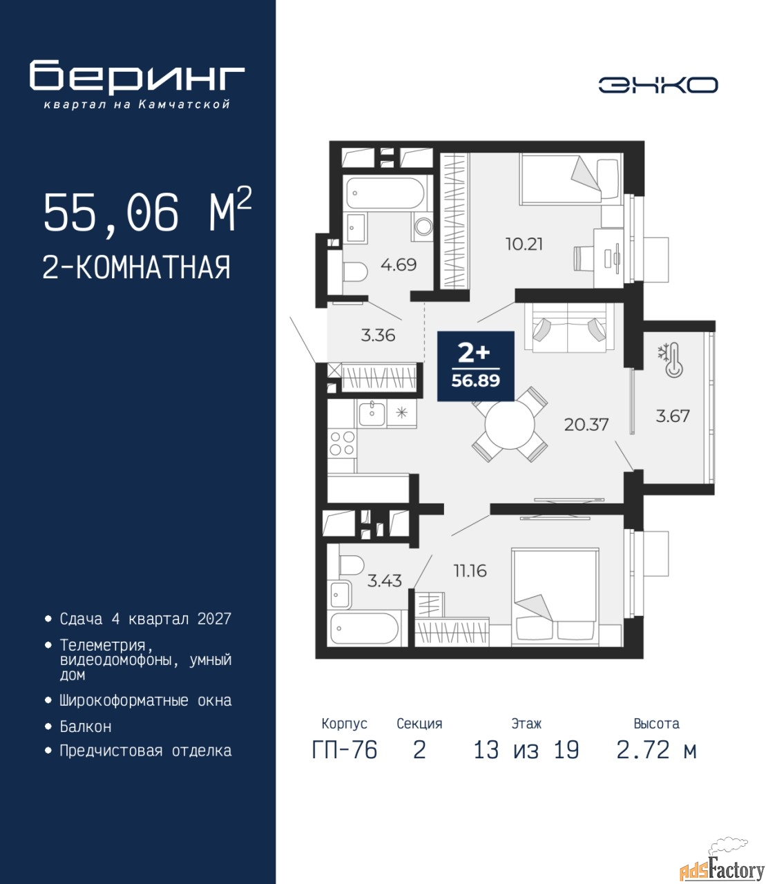 | Общая площадь (кв.м) | 55.06 |