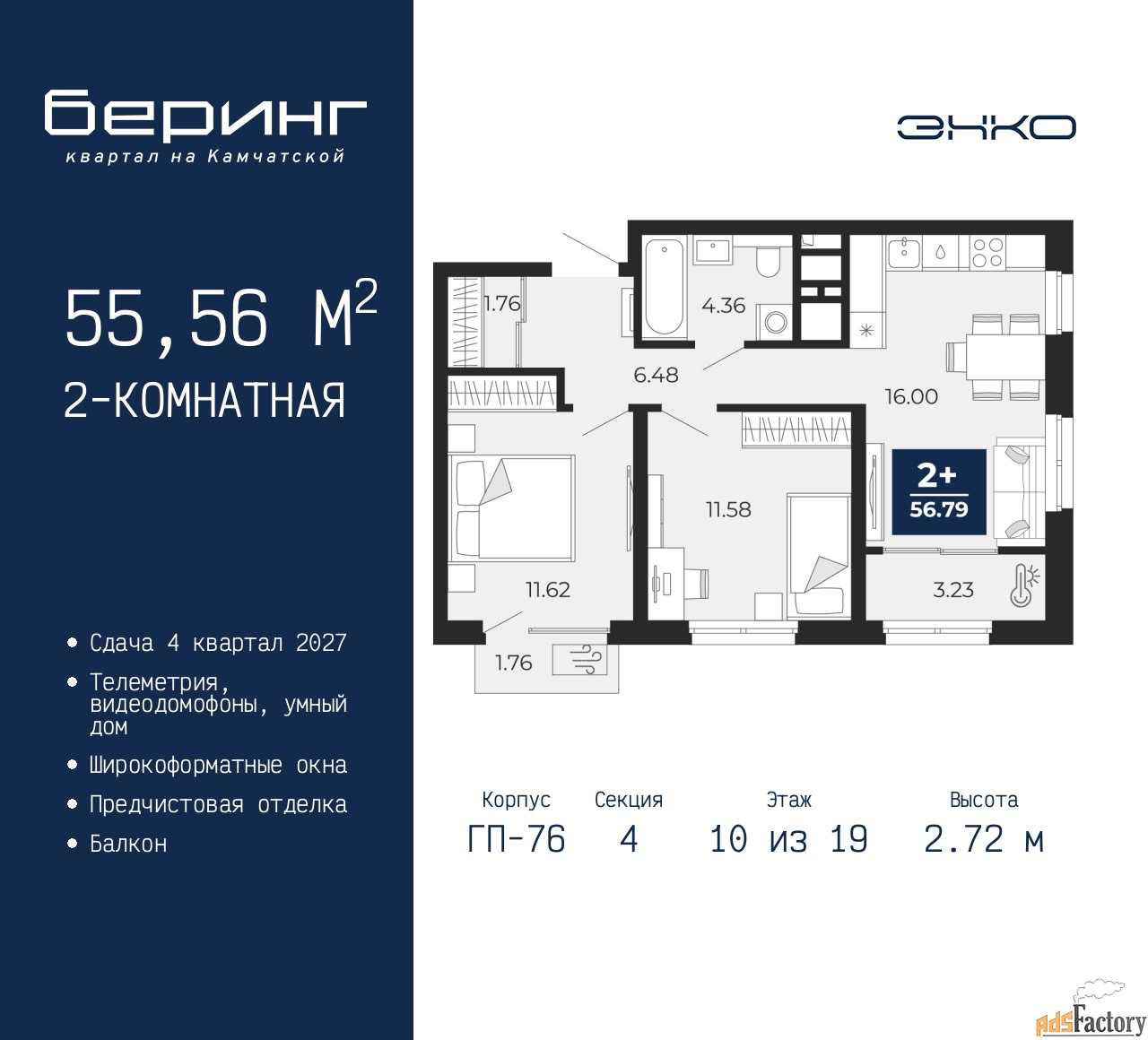 | Общая площадь (кв.м) | 55.56 |