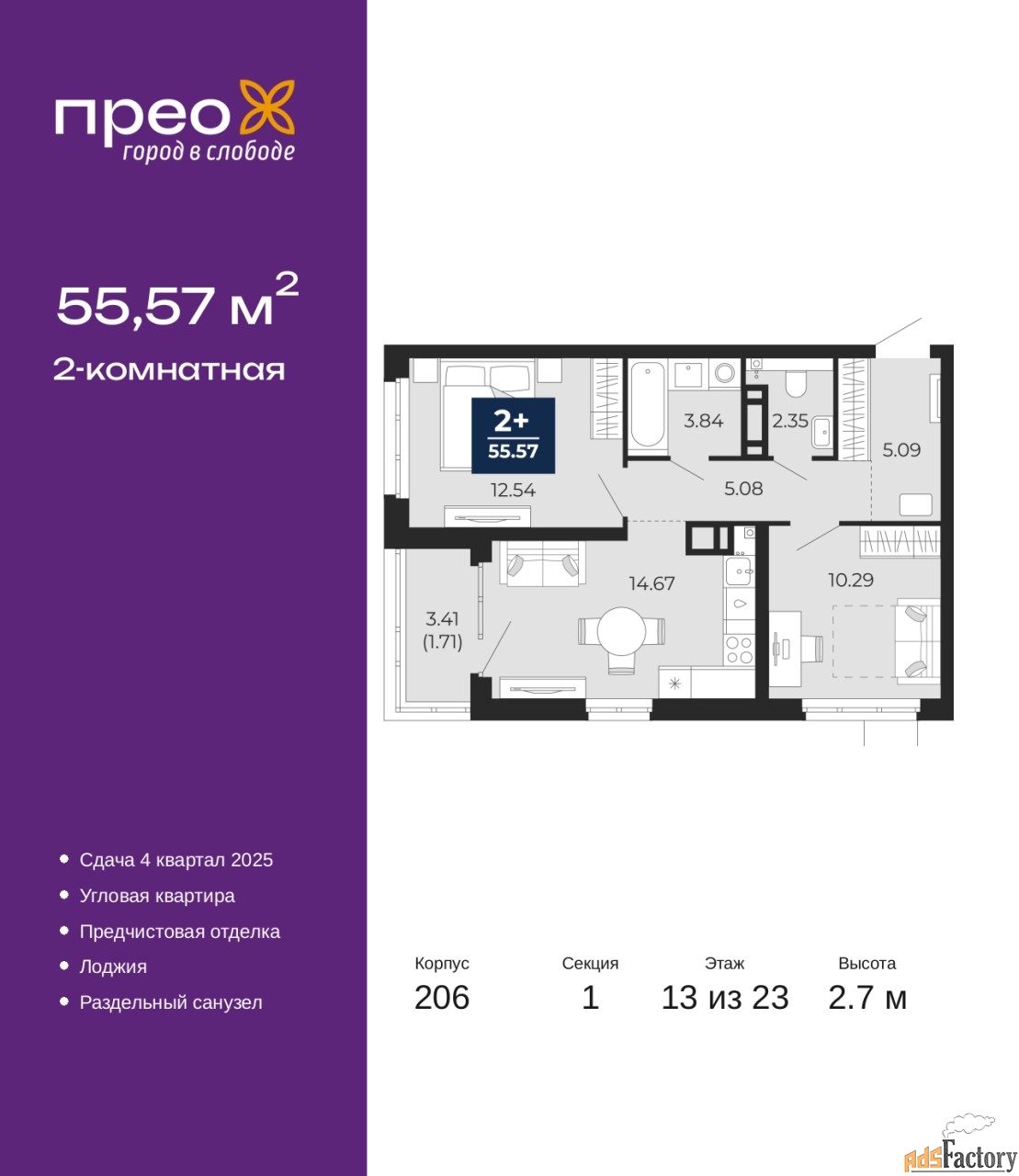 | Общая площадь (кв.м) | 55.57 |