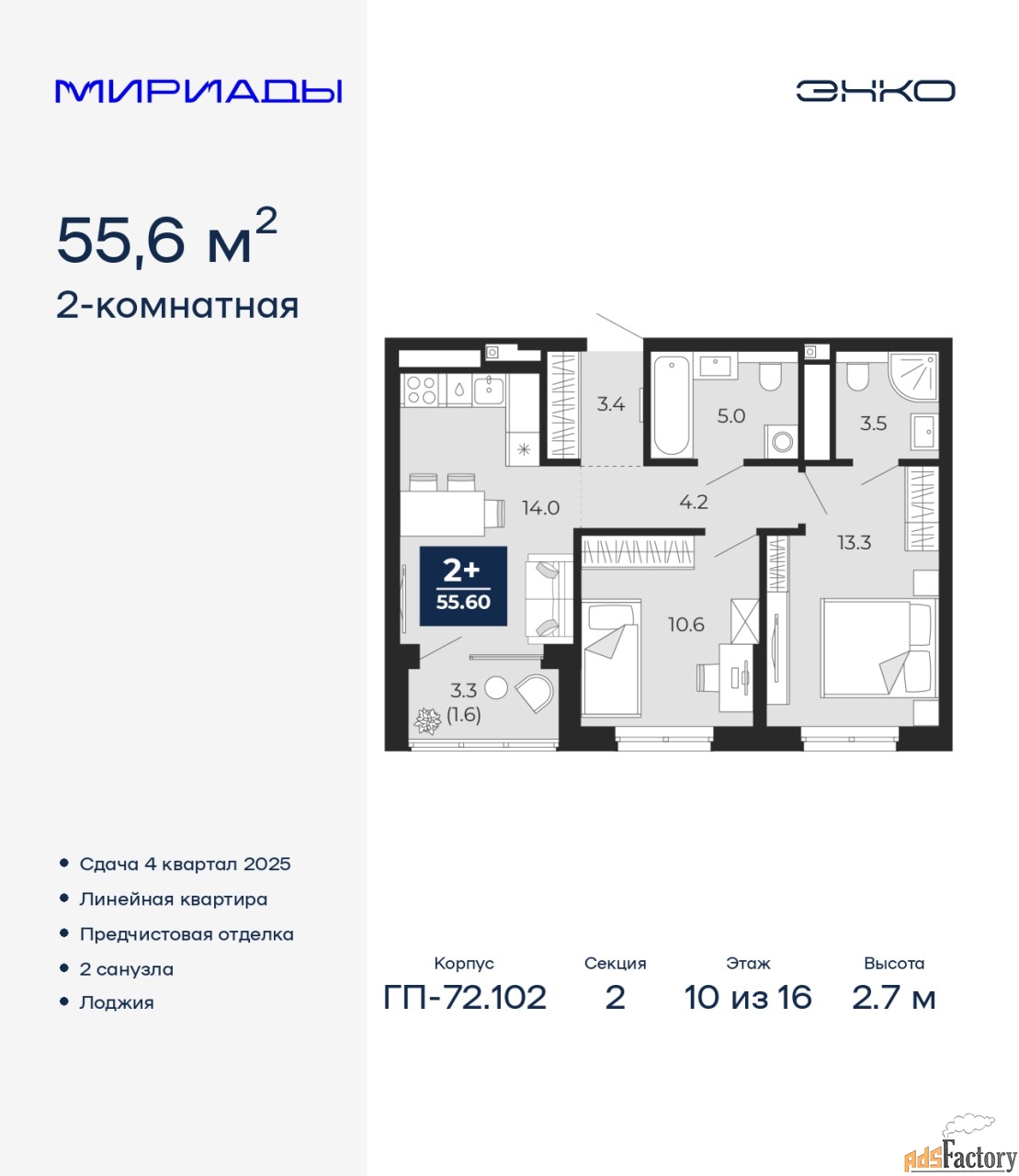 | Общая площадь (кв.м) | 55.6 |