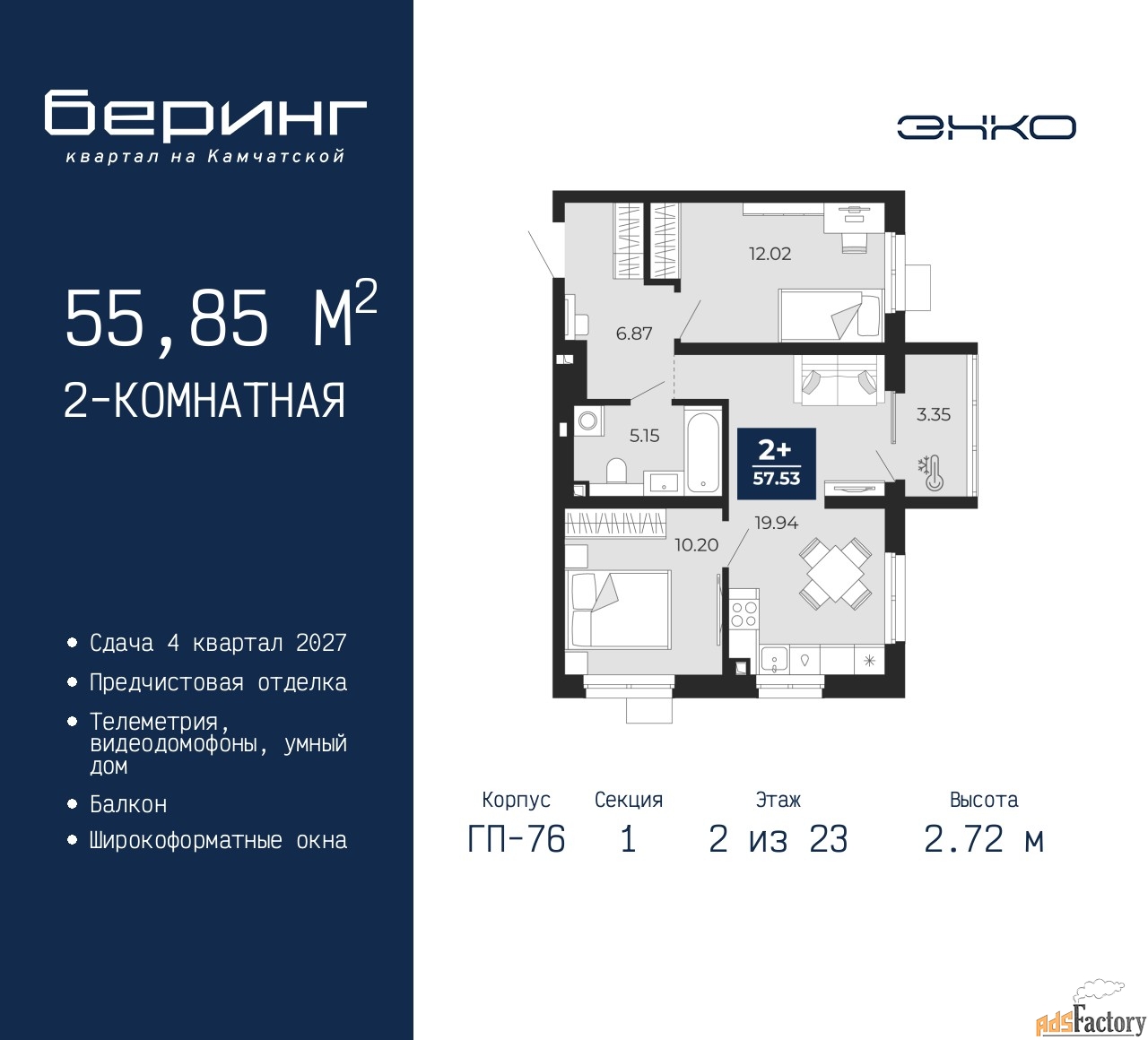 | Общая площадь (кв.м) | 55.85 |
