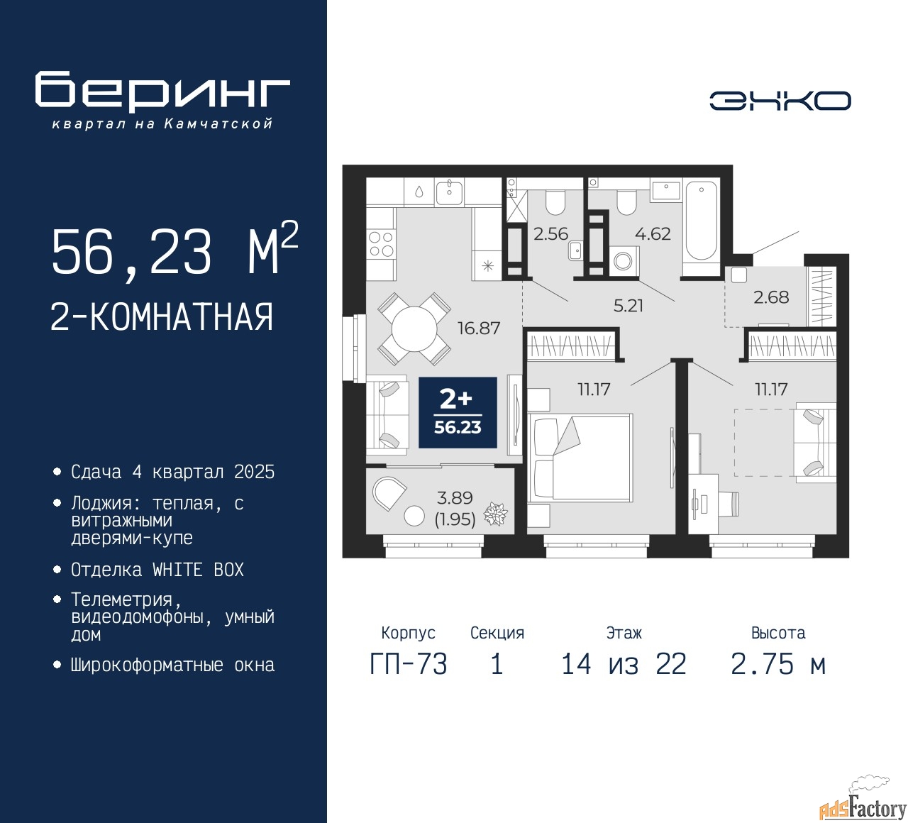 Дом монолитный, многоподъездный, переменной этажности, от 9 до 22 этажей. Квартира находится в 1-й секции высотой 22 этажа в корпусе ГП-73. На этаже 5 квартир. В подъезде 1 пассажирский и 1 грузовой лифт. Окончание строительства - 4 квартал 2025 года. Оформление сделки по договору долевого участия.
