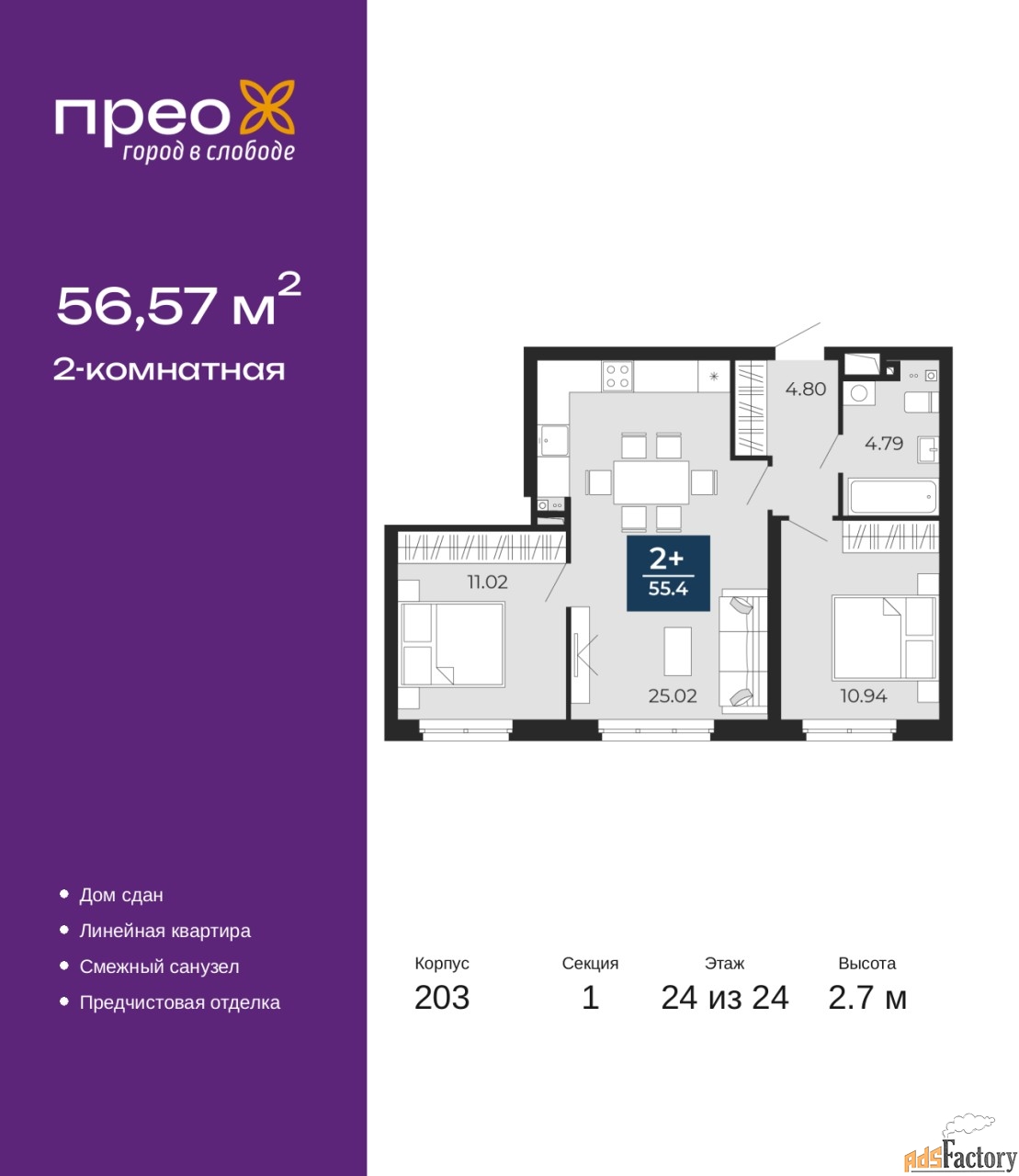 | Общая площадь (кв.м) | 56.57 |