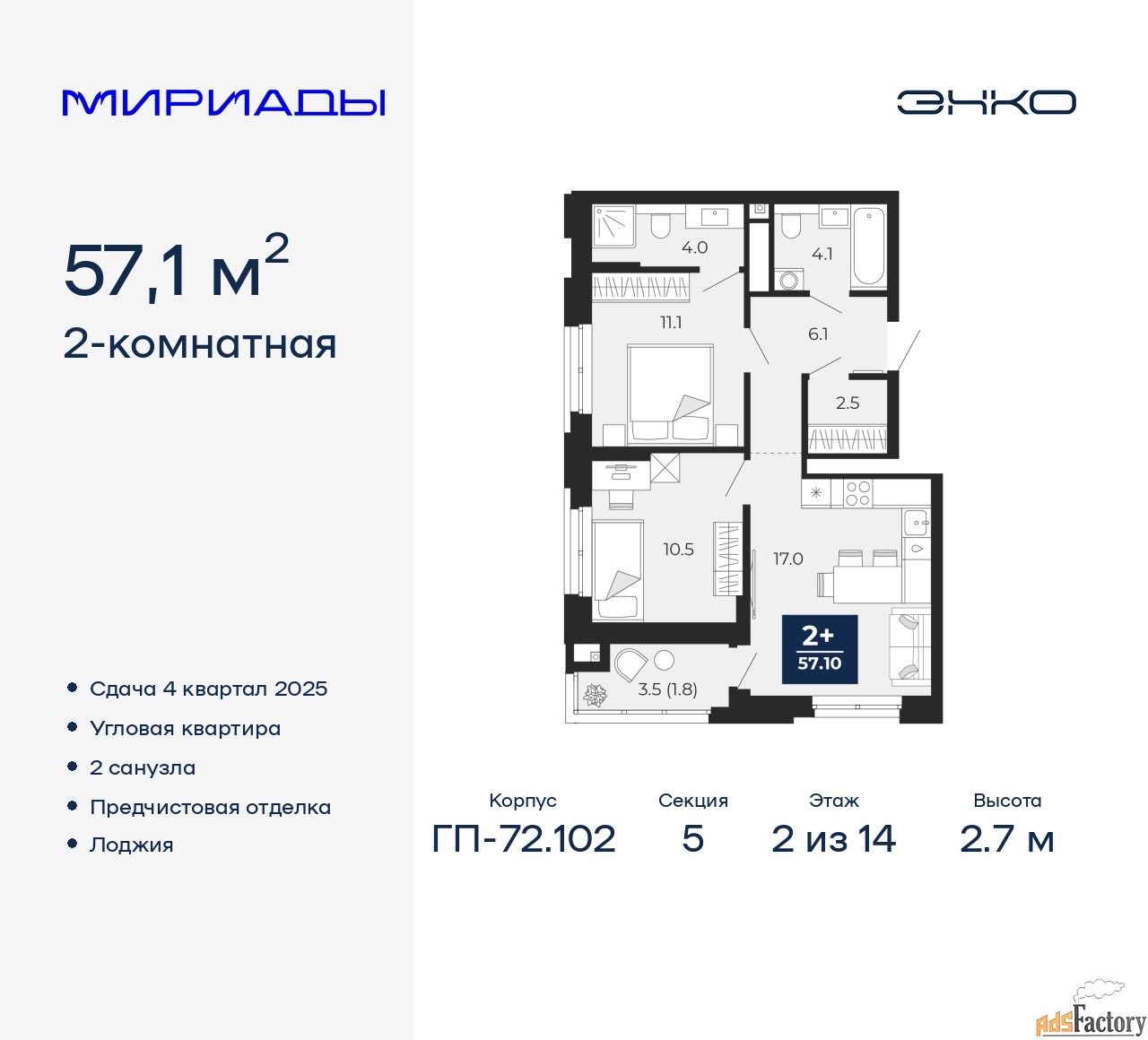 Дом монолитный, многоподъездный, переменной этажности, от 14 до 16 этажей. Квартира находится в 5-й секции высотой 14 этажей в корпусе ГП-72.102. На этаже 8 квартир. В подъезде 1 пассажирский и 1 грузовой лифт. Окончание строительства - 4 квартал 2025 года. Оформление сделки по договору долевого участия.