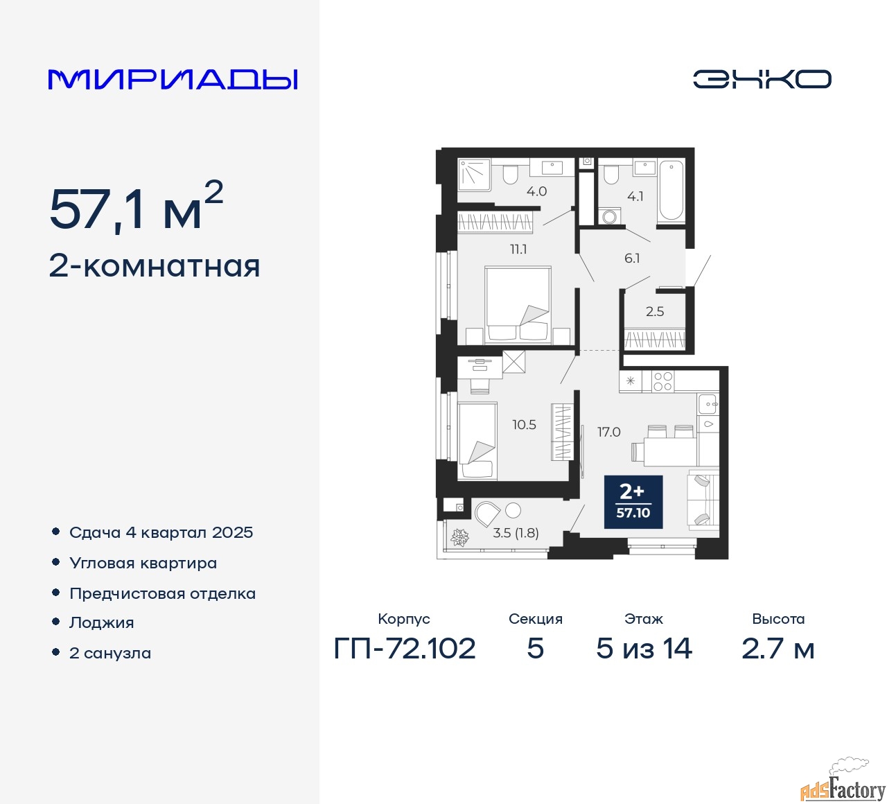 | Общая площадь (кв.м) | 57.1 |