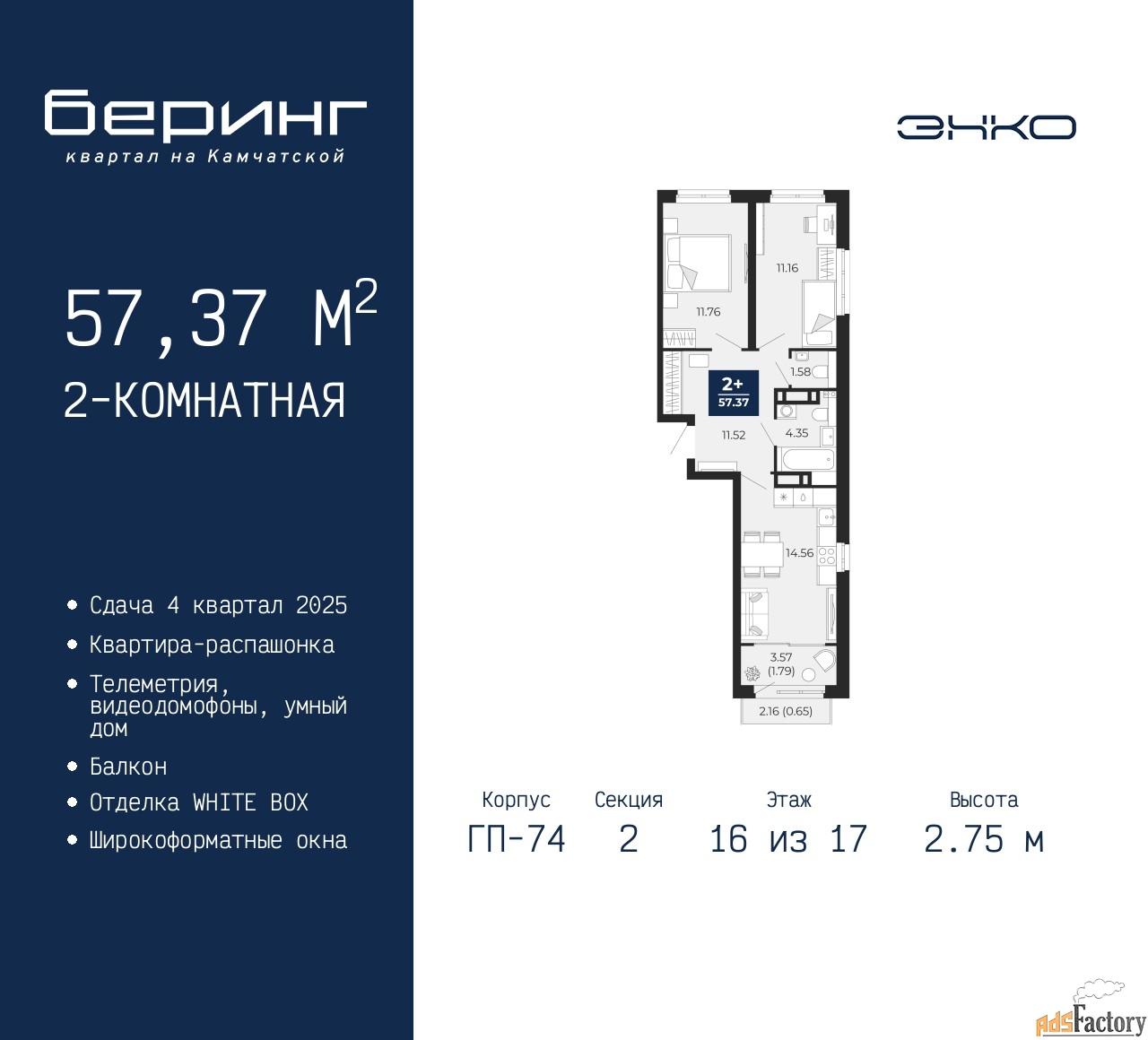 | Общая площадь (кв.м) | 57.37 |