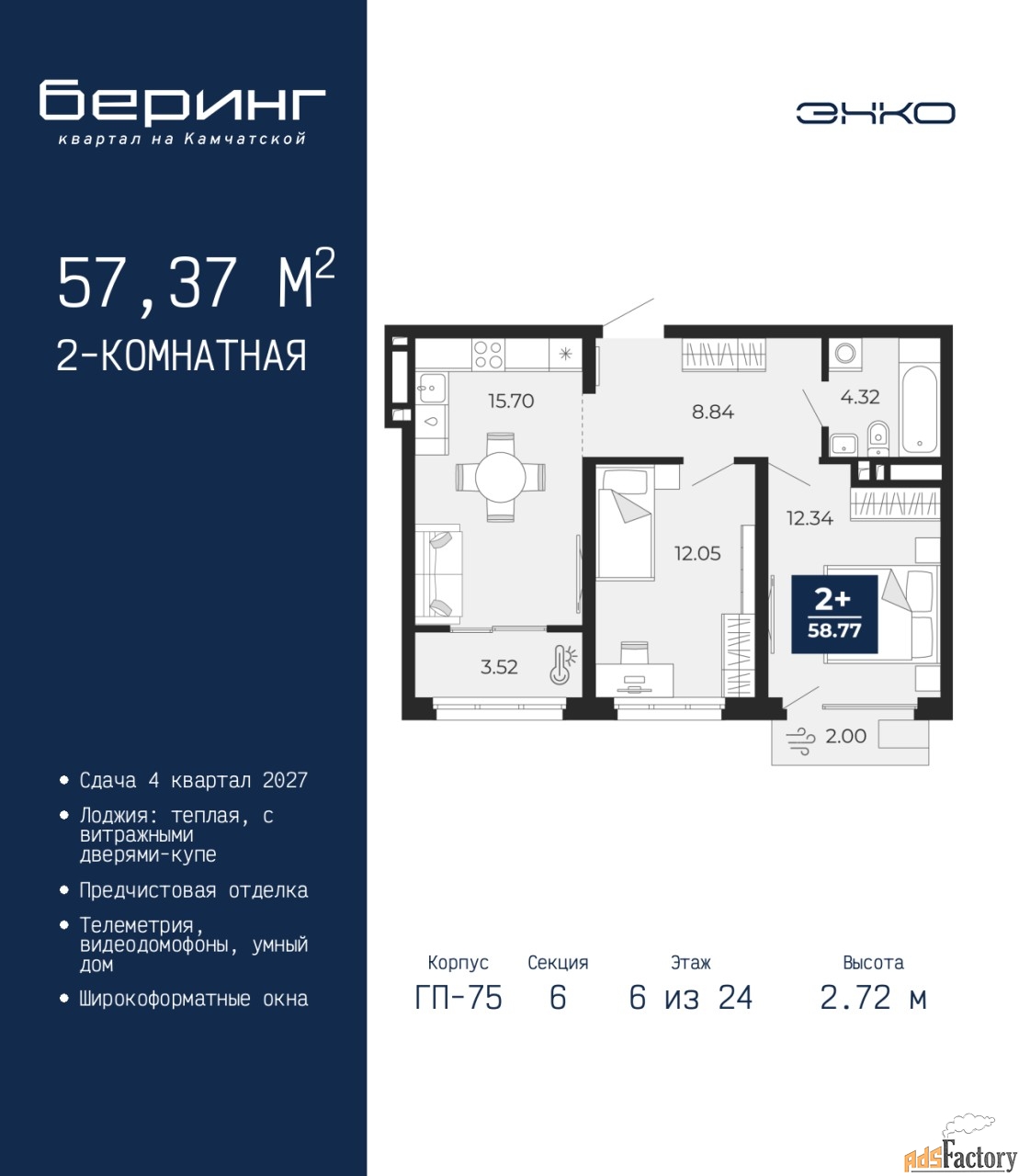 | Общая площадь (кв.м) | 57.37 |