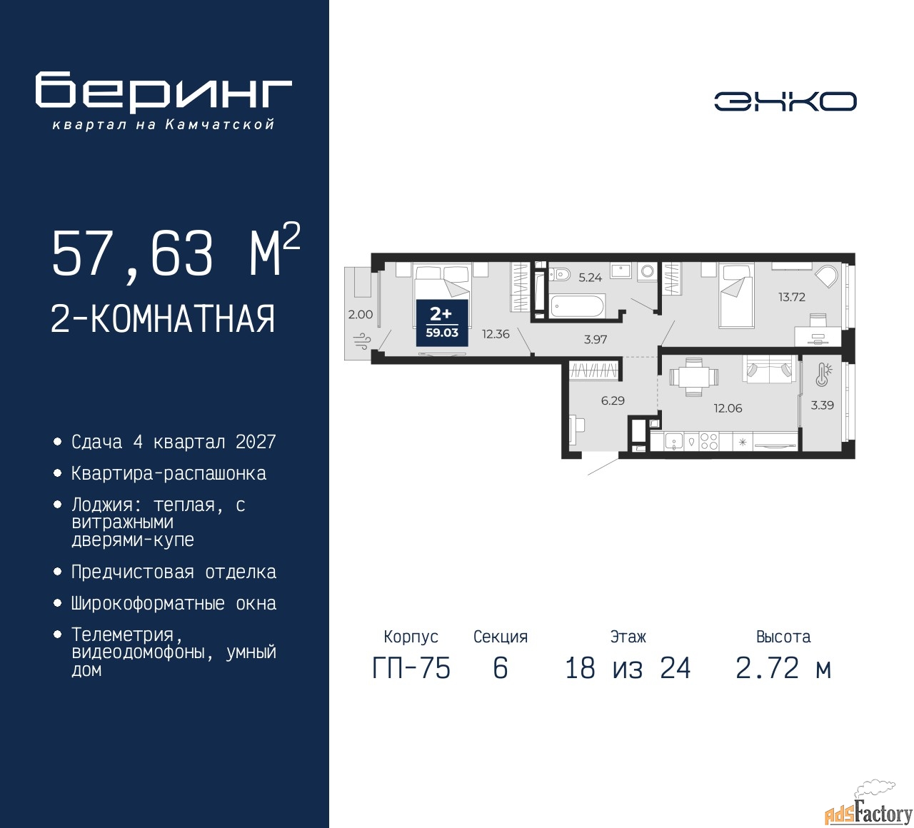 | Общая площадь (кв.м) | 57.63 |