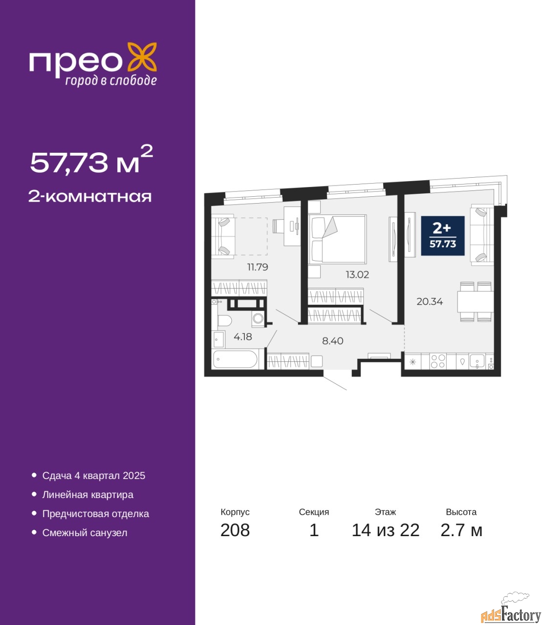 | Общая площадь (кв.м) | 57.73 |