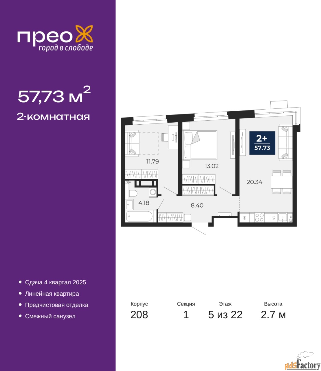 | Общая площадь (кв.м) | 57.73 |