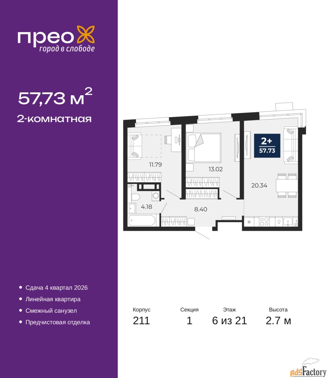 Дом монолитный, черырехподъездный, переменной этажности, от 14 до 21 этажей. Квартира находится в 1-й секции высотой 21 этаж в корпусе 211. На этаже 8 квартир. В подъезде 1 пассажирский и 1 грузовой лифт. Окончание строительства - 4 квартал 2026 года. Оформление сделки по договору долевого участия.