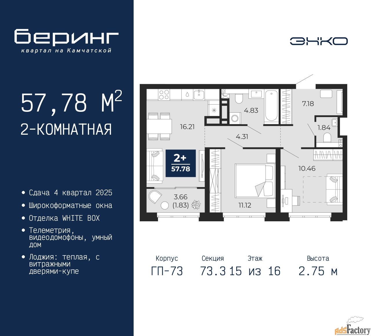 | Общая площадь (кв.м) | 57.78 |