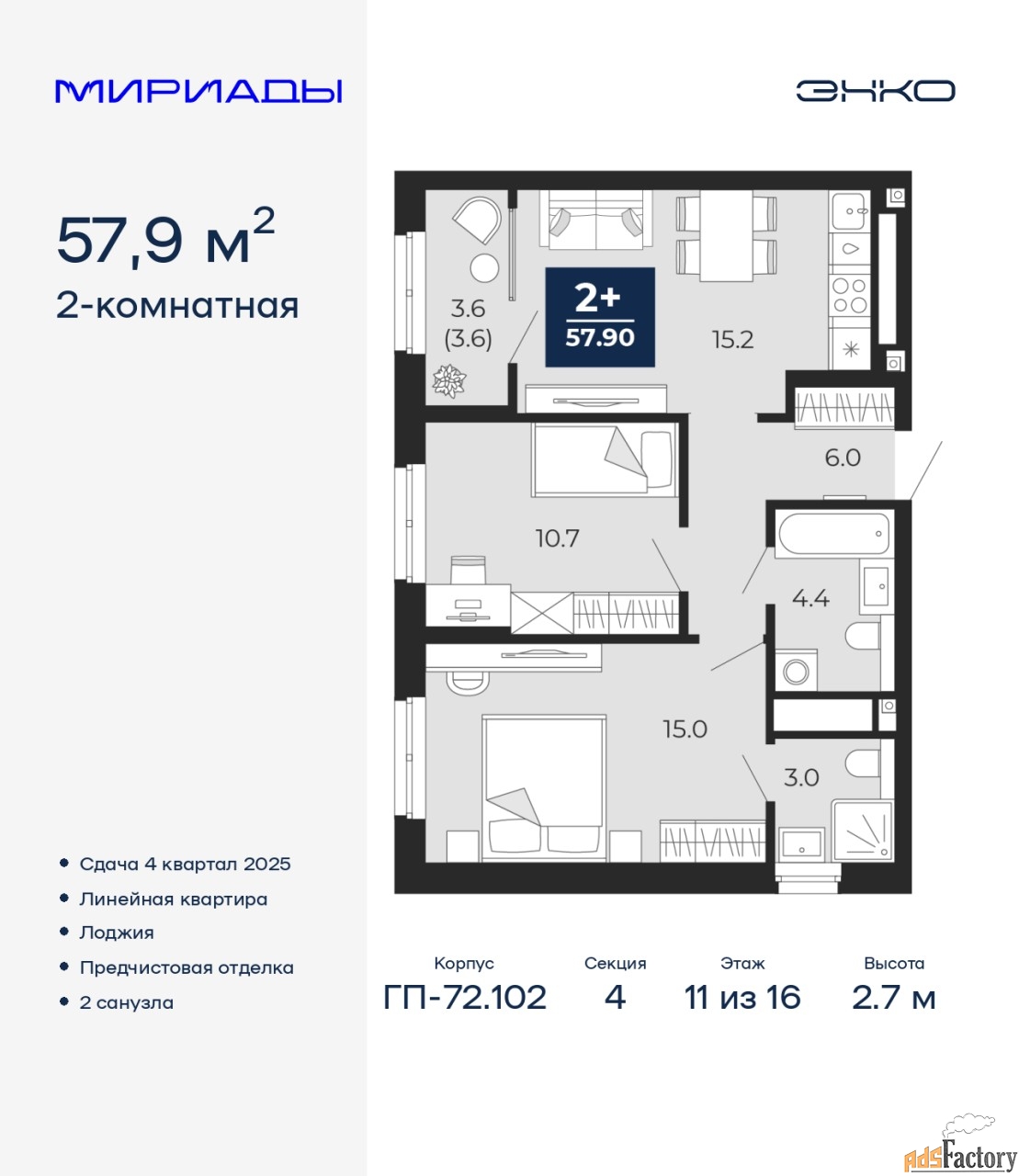 | Общая площадь (кв.м) | 57.9 |