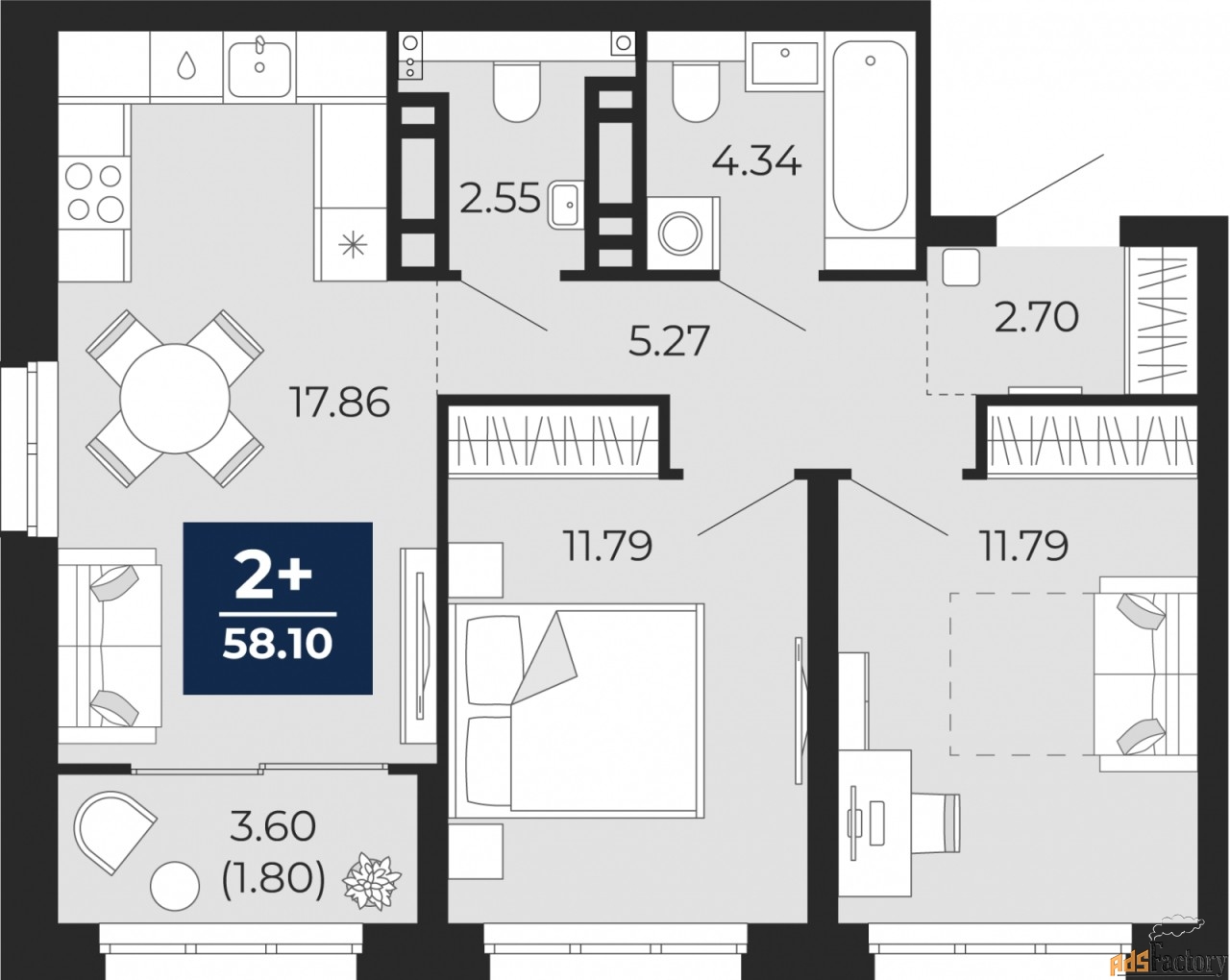 | Общая площадь (кв.м) | 58.1 |