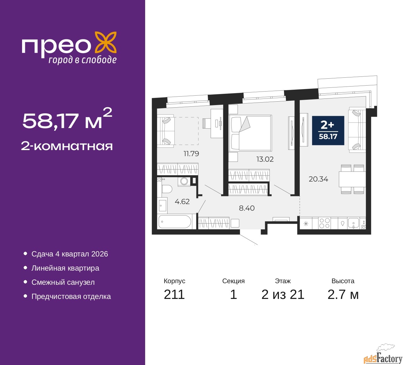 Дом монолитный, черырехподъездный, переменной этажности, от 14 до 21 этажей. Квартира находится в 1-й секции высотой 21 этаж в корпусе 211. На этаже 8 квартир. В подъезде 1 пассажирский и 1 грузовой лифт. Окончание строительства - 4 квартал 2026 года. Оформление сделки по договору долевого участия.