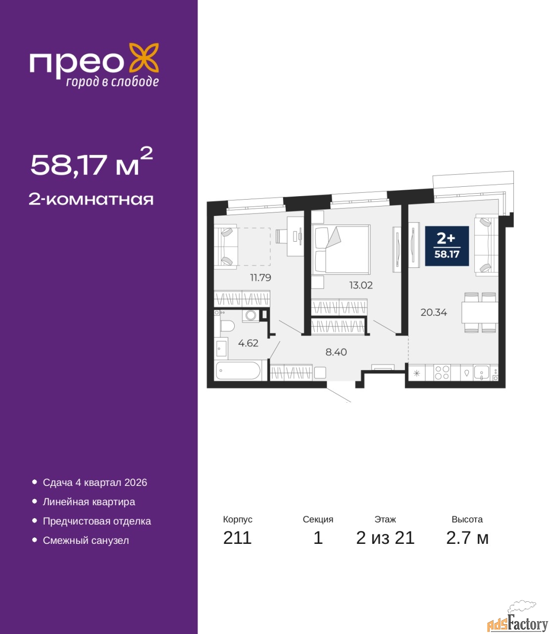 Дом монолитный, черырехподъездный, переменной этажности, от 14 до 21 этажей. Квартира находится в 1-й секции высотой 21 этаж в корпусе 211. На этаже 8 квартир. В подъезде 1 пассажирский и 1 грузовой лифт. Окончание строительства - 4 квартал 2026 года. Оформление сделки по договору долевого участия.