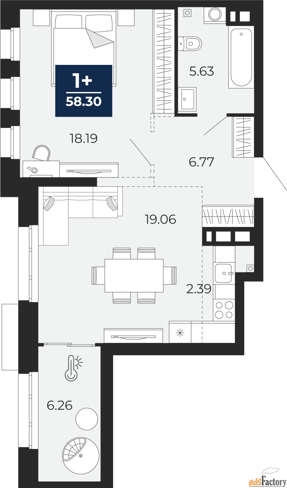 | Общая площадь (кв.м) | 58.3 |