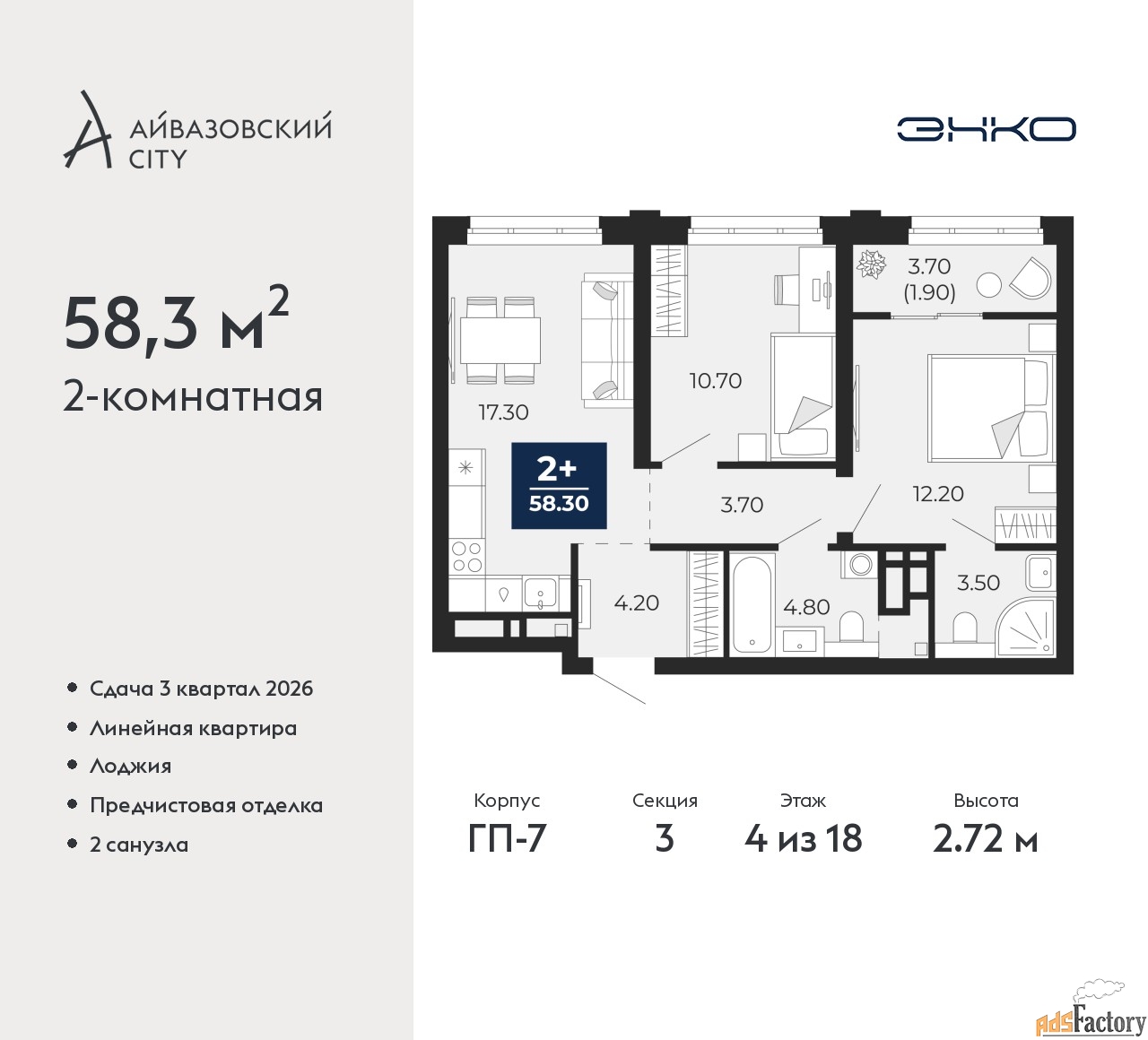 Дом монолитный, многоподъездный, переменной этажности, от 9 до 24 этажей. Квартира находится в 3-й секции высотой 18 этажей в корпусе ГП-7. На этаже 5 квартир. В подъезде 1 пассажирский и 2 грузовых лифта. Окончание строительства - 3 квартал 2026 года. Оформление сделки по договору долевого участия.
