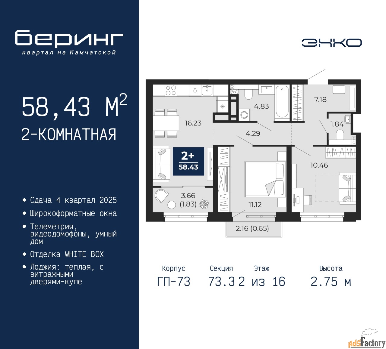 Дом монолитный, многоподъездный, переменной этажности, от 9 до 22 этажей. Квартира находится в 73.3-й секции высотой 16 этажей в корпусе ГП-73. На этаже 8 квартир. В подъезде 1 пассажирский и 1 грузовой лифт. Окончание строительства - 4 квартал 2025 года. Оформление сделки по договору долевого участия.