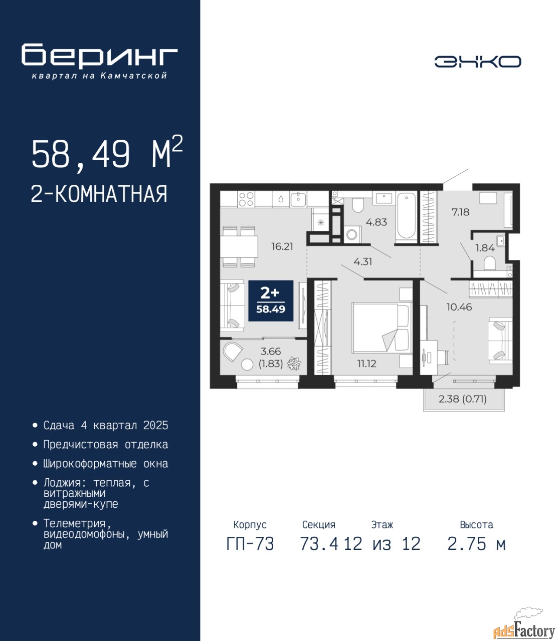 | Общая площадь (кв.м) | 58.49 |
