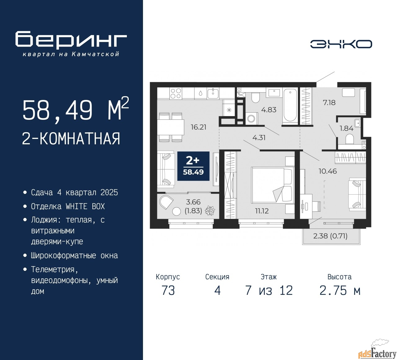Дом монолитный, многоподъездный, переменной этажности, от 9 до 22 этажей. Квартира находится в 73.4-й секции высотой 12 этажей в корпусе ГП-73. На этаже 8 квартир. В подъезде 1 пассажирский и 1 грузовой лифт. Окончание строительства - 4 квартал 2025 года. Оформление сделки по договору долевого участия.