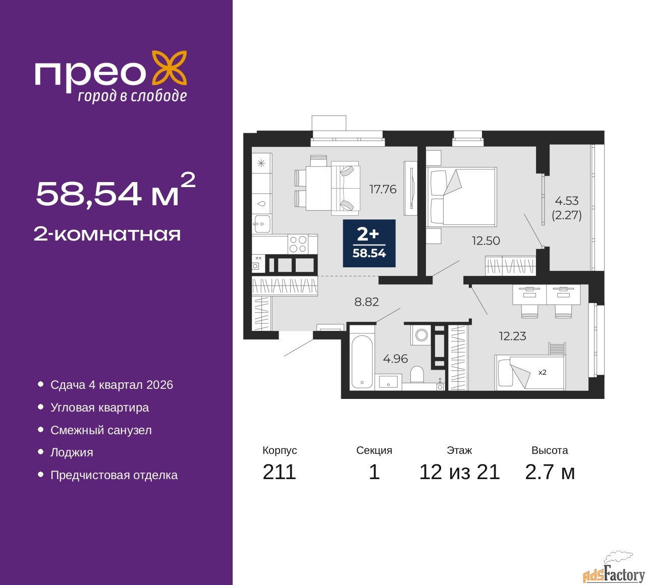 | Общая площадь (кв.м) | 58.54 |