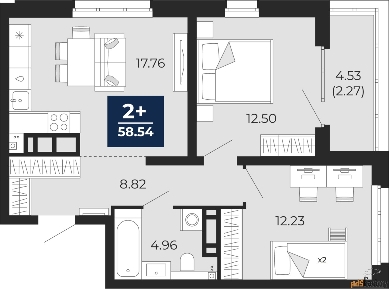 | Общая площадь (кв.м) | 58.54 |