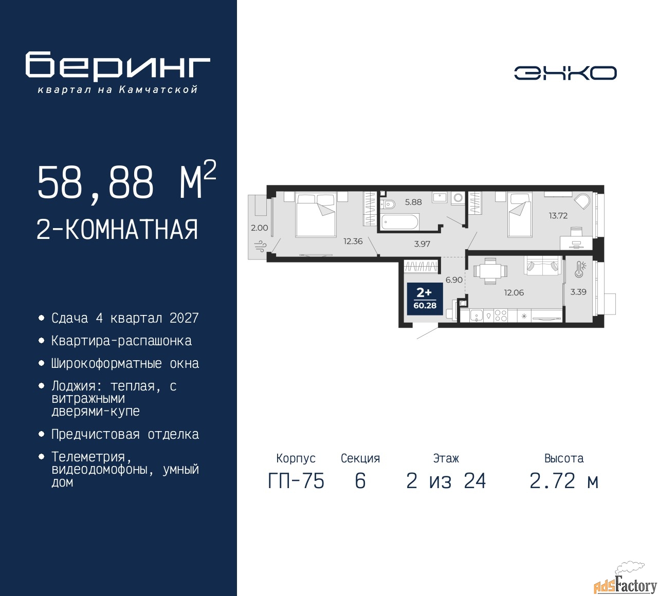 | Общая площадь (кв.м) | 58.88 |