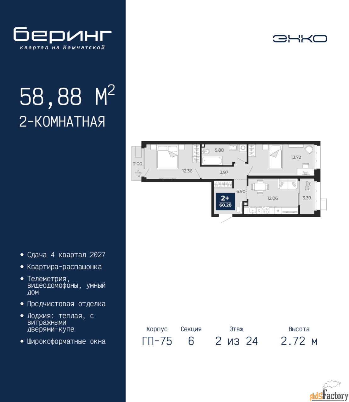 | Общая площадь (кв.м) | 58.88 |
