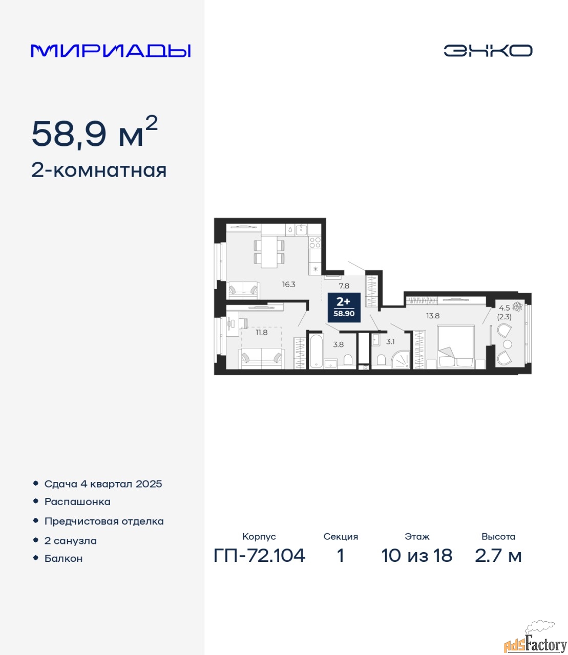 | Общая площадь (кв.м) | 58.9 |