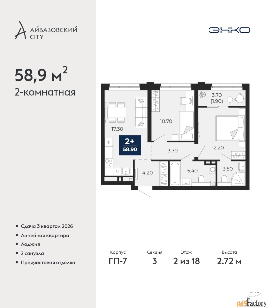 | Общая площадь (кв.м) | 58.9 |