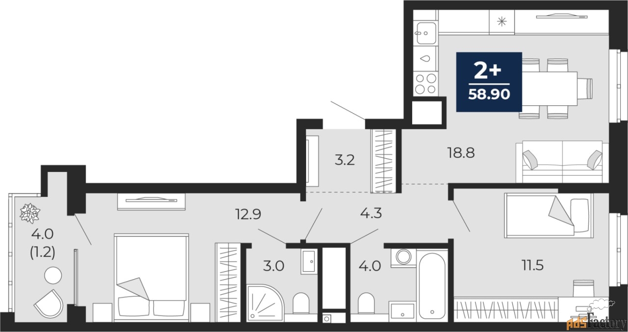 | Общая площадь (кв.м) | 58.9 |
