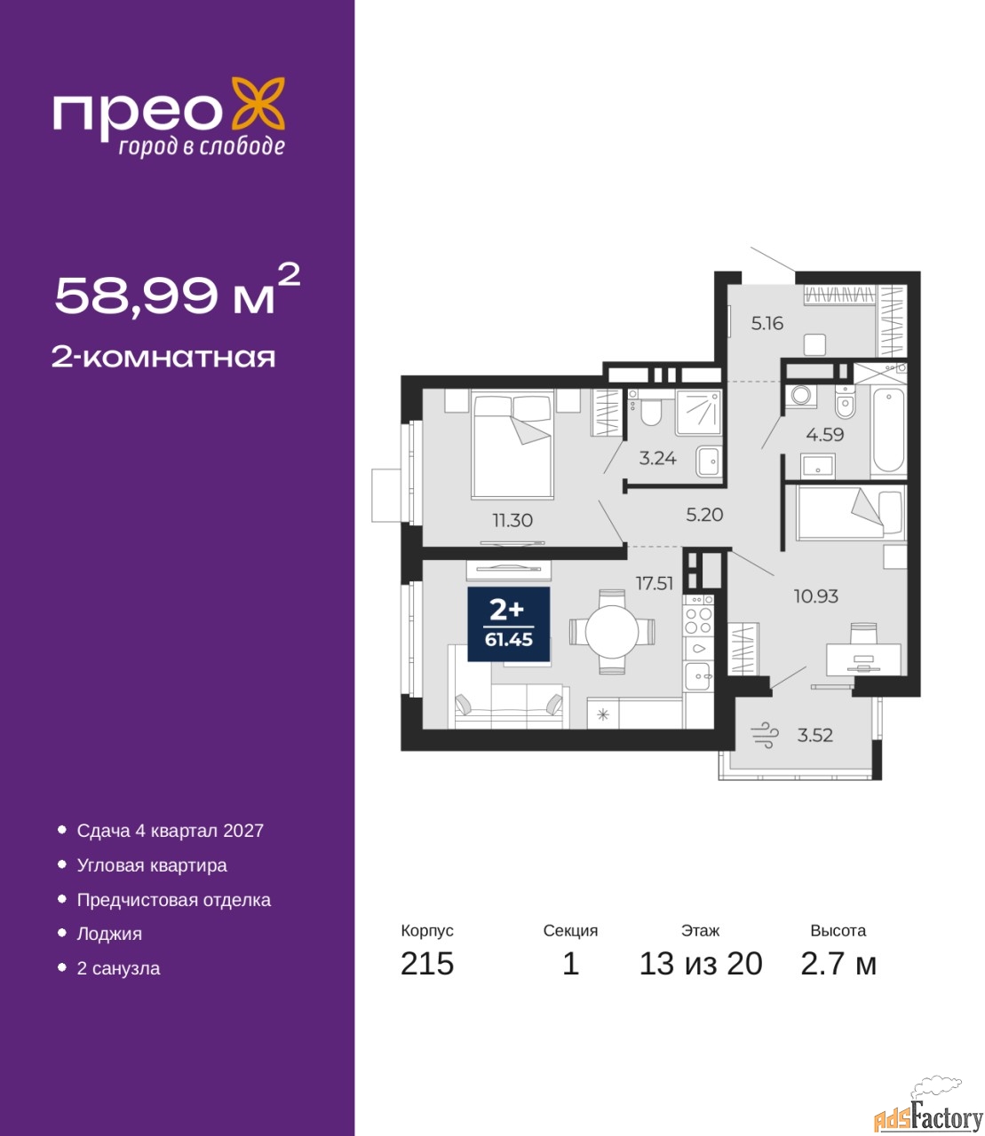 | Общая площадь (кв.м) | 58.99 |