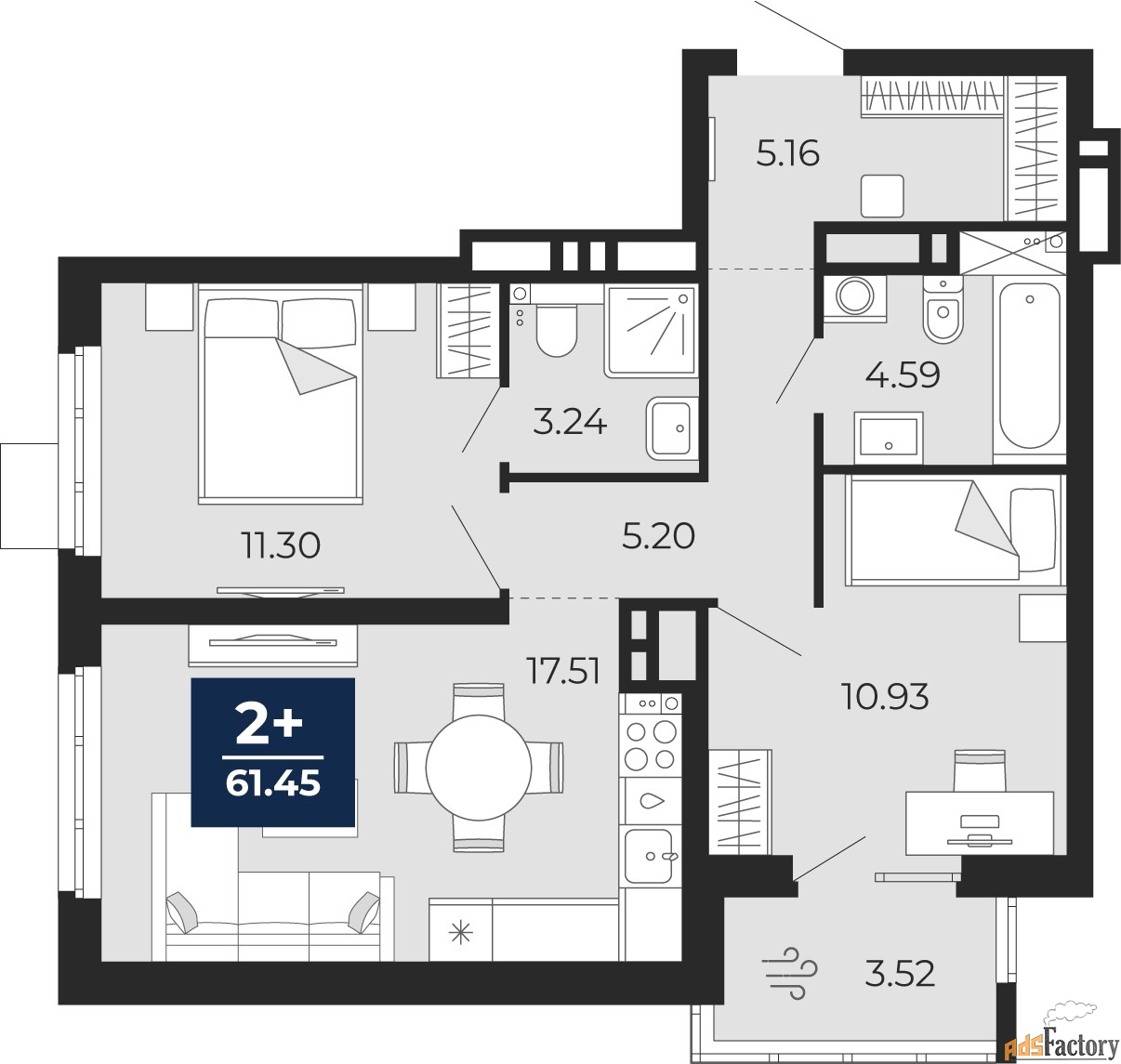 В квартирах выполнена качественная предчистовая отделка. Гладкие стены с финишным выравниванием по маякам. Ровный потолок для установки натяжного потолка. Установлены пятикамерные окна с двойным стеклопакетом (3 стекла).