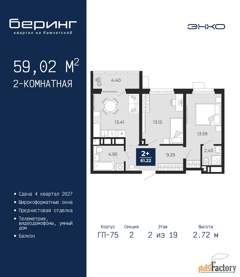 | Общая площадь (кв.м) | 59.02 |