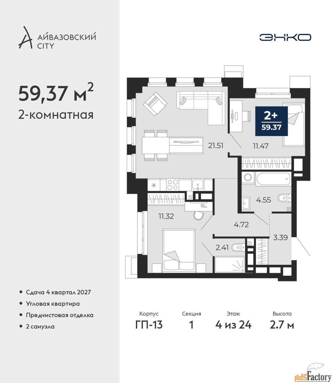 Дом монолитный, многоподъездный, высотой 24 этажа. Квартира находится в 1-й секции в корпусе ГП-13. На этаже 2 квартиры. Окончание строительства - 4 квартал 2027 года. Оформление сделки по договору долевого участия.