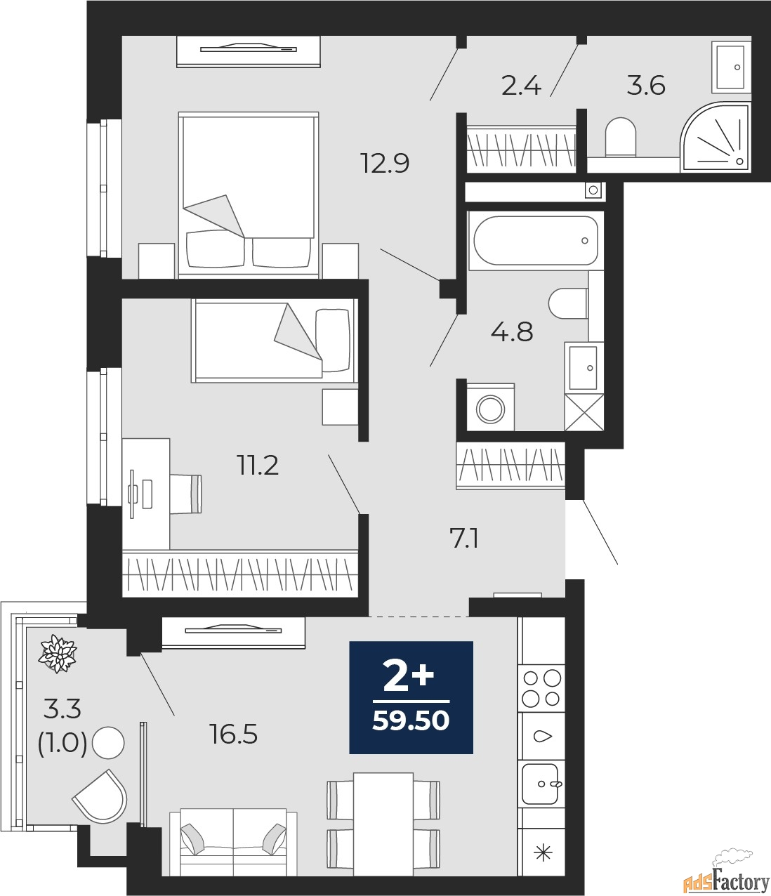 | Общая площадь (кв.м) | 59.5 |