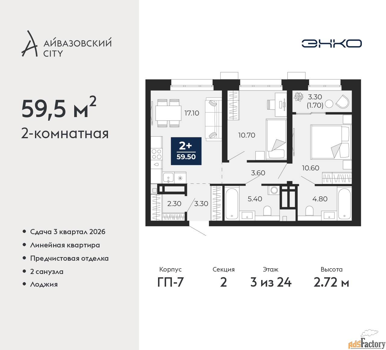 | Общая площадь (кв.м) | 59.5 |