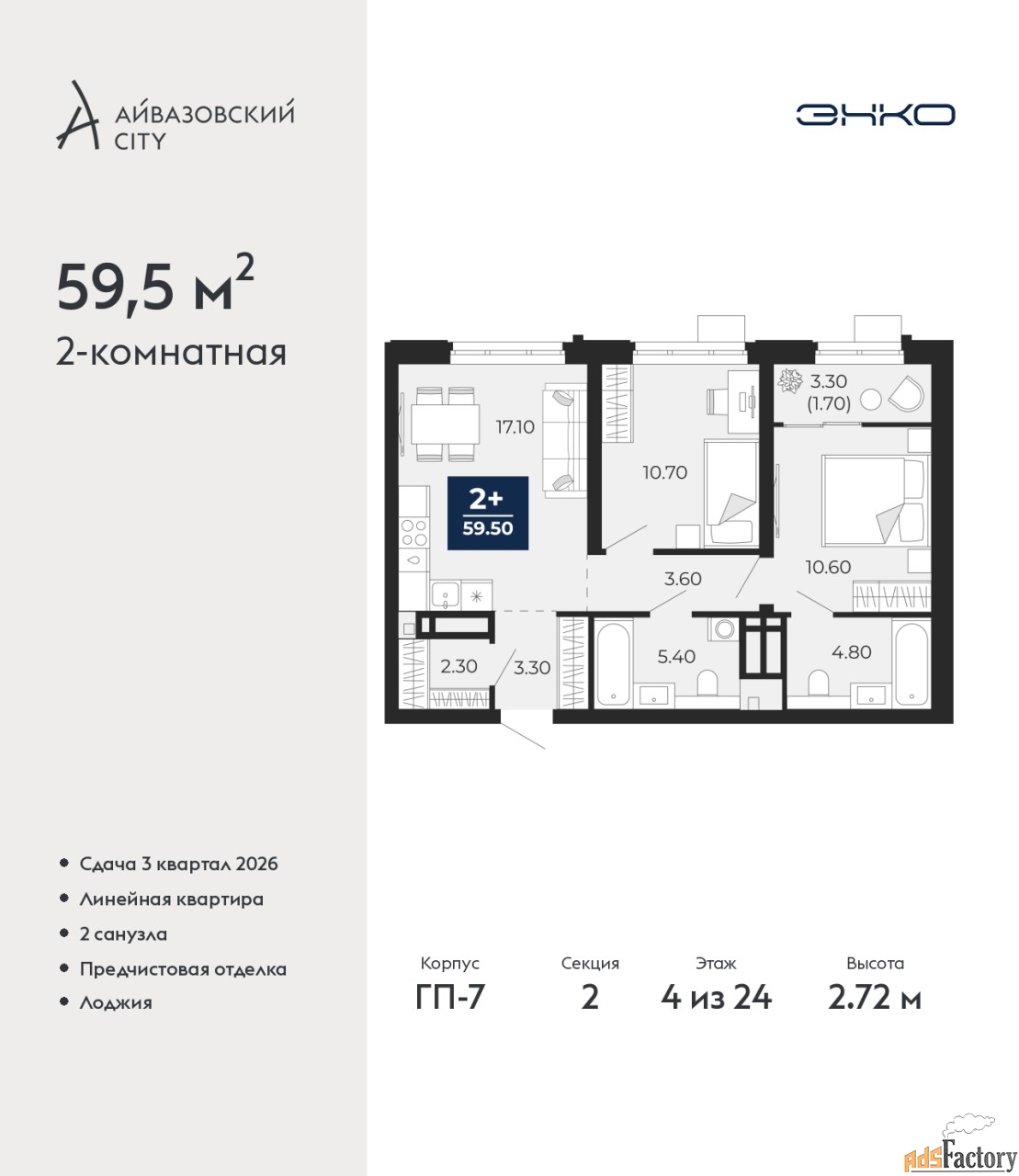 Дом монолитный, многоподъездный, переменной этажности, от 9 до 24 этажей. Квартира находится во 2-й секции высотой 24 этажа в корпусе ГП-7. На этаже 7 квартир. В подъезде 1 пассажирский и 2 грузовых лифта. Окончание строительства - 3 квартал 2026 года. Оформление сделки по договору долевого участия.