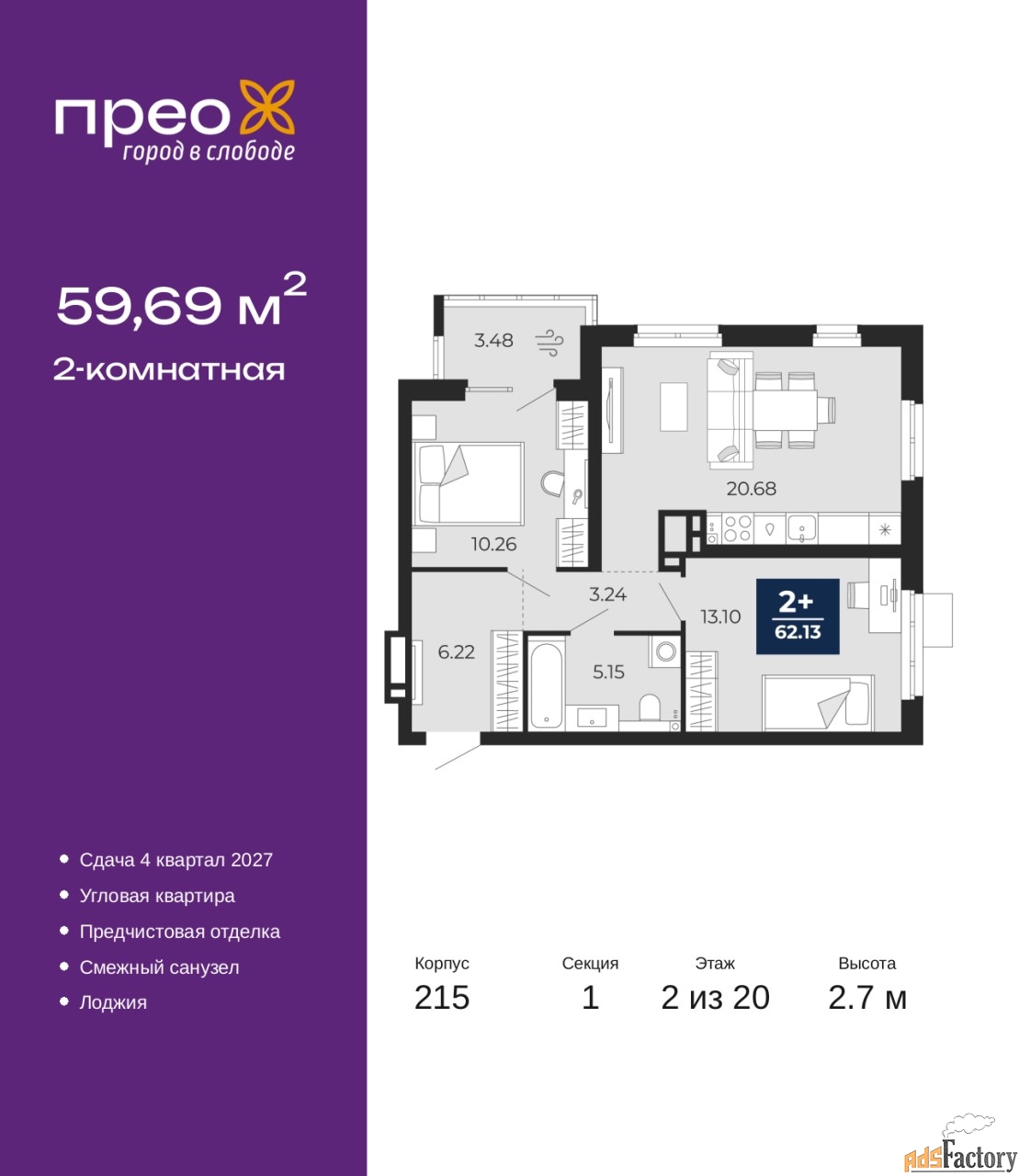 | Общая площадь (кв.м) | 59.69 |