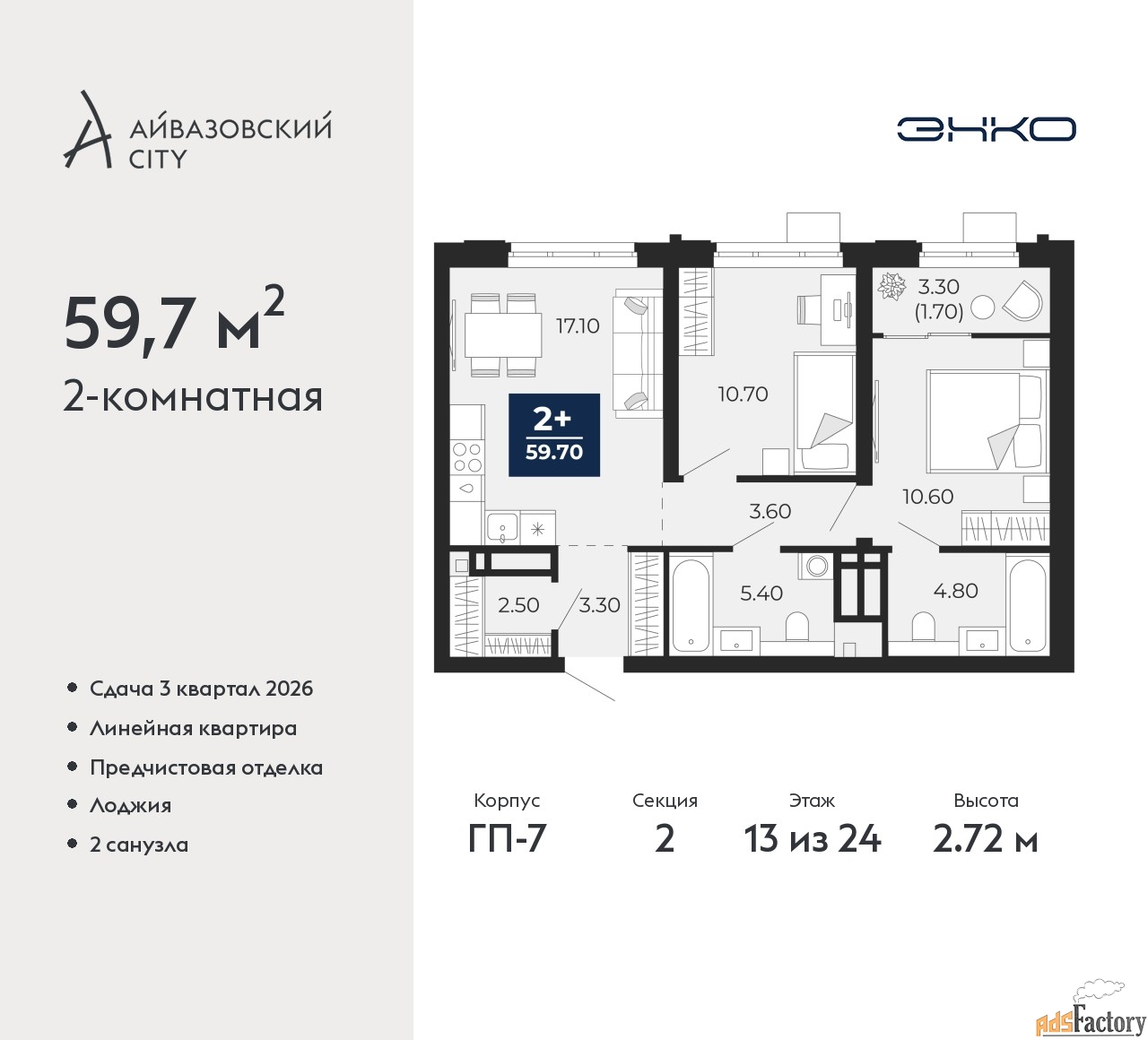 Дом монолитный, многоподъездный, переменной этажности, от 9 до 24 этажей. Квартира находится во 2-й секции высотой 24 этажа в корпусе ГП-7. На этаже 7 квартир. В подъезде 1 пассажирский и 2 грузовых лифта. Окончание строительства - 3 квартал 2026 года. Оформление сделки по договору долевого участия.