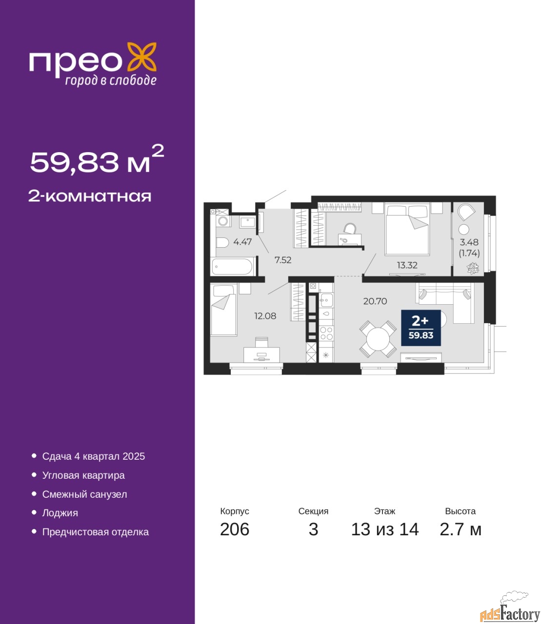 | Общая площадь (кв.м) | 59.83 |
