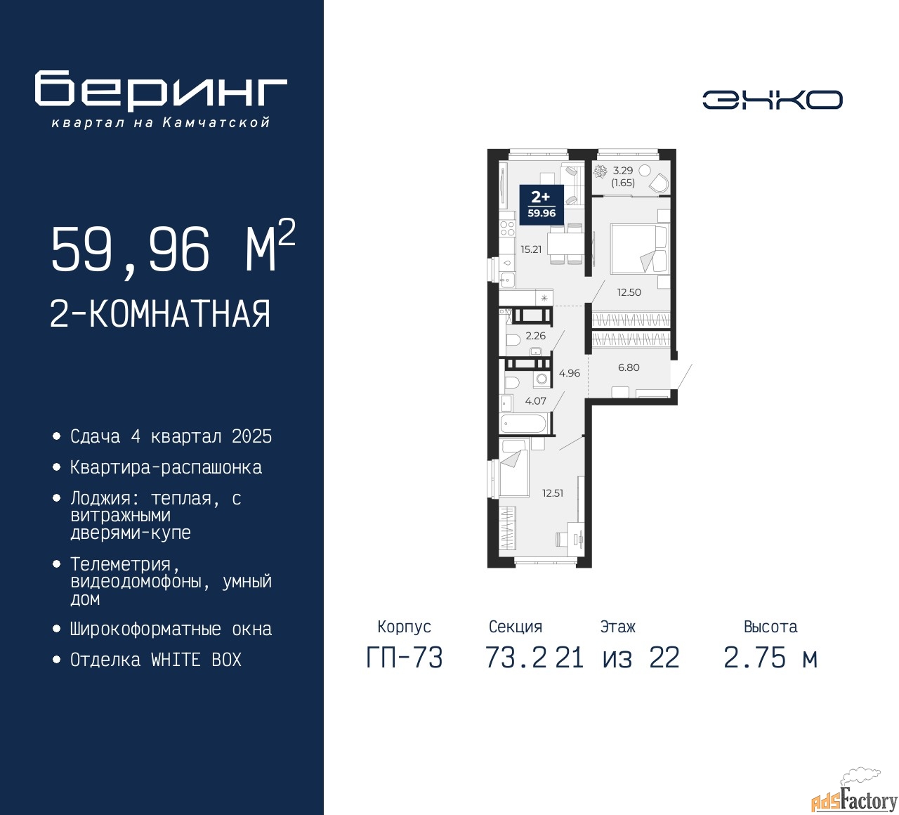 Дом монолитный, многоподъездный, переменной этажности, от 9 до 22 этажей. Квартира находится в 73.2-й секции высотой 22 этажа в корпусе ГП-73. На этаже 7 квартир. В подъезде 1 пассажирский и 1 грузовой лифт. Окончание строительства - 4 квартал 2025 года. Оформление сделки по договору долевого участия.