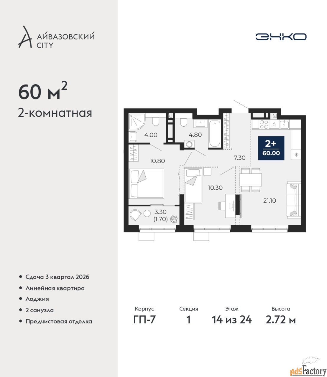 Дом монолитный, многоподъездный, переменной этажности, от 9 до 24 этажей. Квартира находится в 1-й секции высотой 24 этажа в корпусе ГП-7. На этаже 6 квартир. В подъезде 1 пассажирский и 2 грузовых лифта. Окончание строительства - 3 квартал 2026 года. Оформление сделки по договору долевого участия.