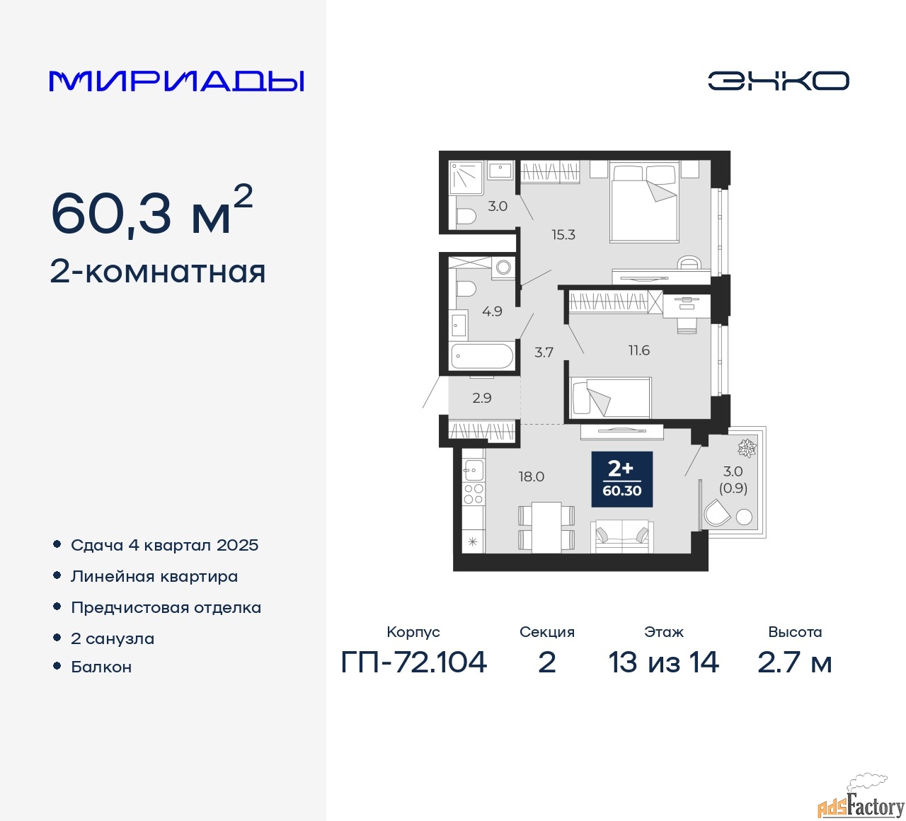 | Общая площадь (кв.м) | 60.3 |