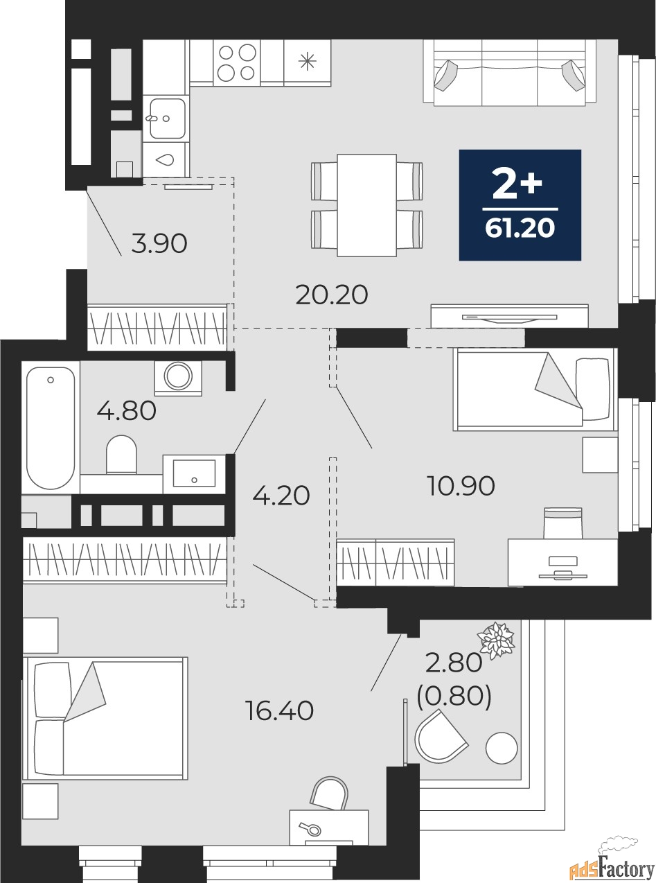 | Общая площадь (кв.м) | 60.4 |