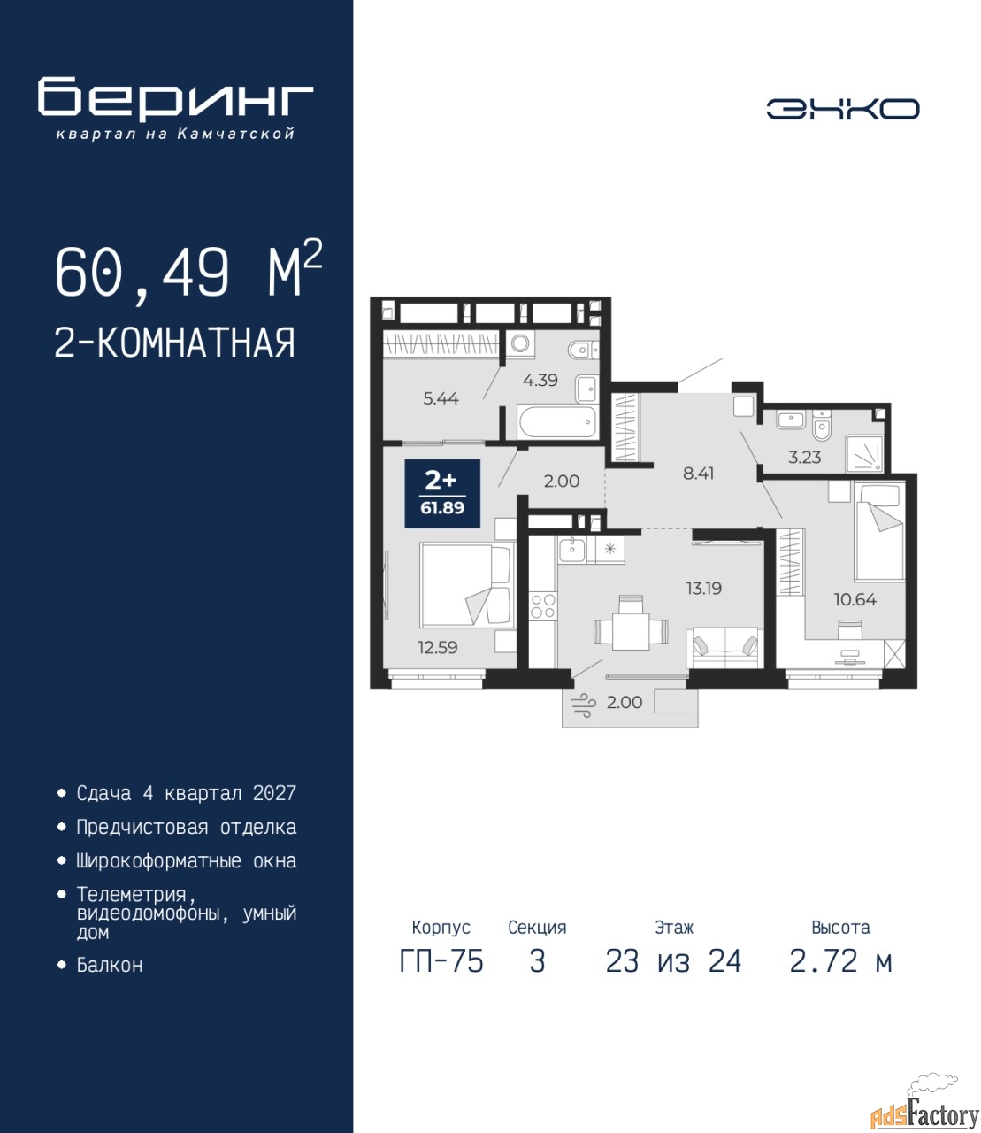 | Общая площадь (кв.м) | 60.49 |