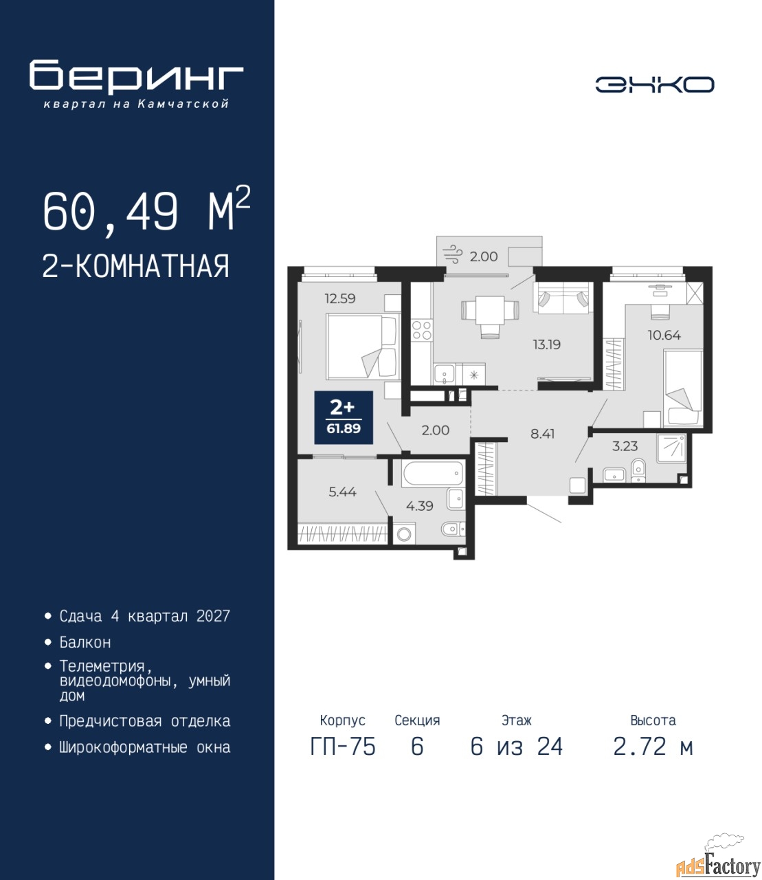 Дом монолитный, многоподъездный, переменной этажности, от 17 до 24 этажей. Квартира находится в 6-й секции высотой 24 этажа в корпусе ГП-75. На этаже 6 квартир. В подъезде 2 пассажирских и 1 грузовой лифт. Окончание строительства - 4 квартал 2027 года. Оформление сделки по договору долевого участия.